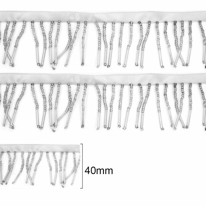 Descrição Franja de Miçanga - 40mm x 9,14m - Prata - RO.151351
