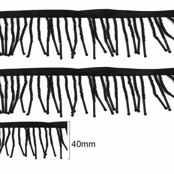 Descrição Franja de Miçanga - 40mm x 9,14m - Preto - RO.151351