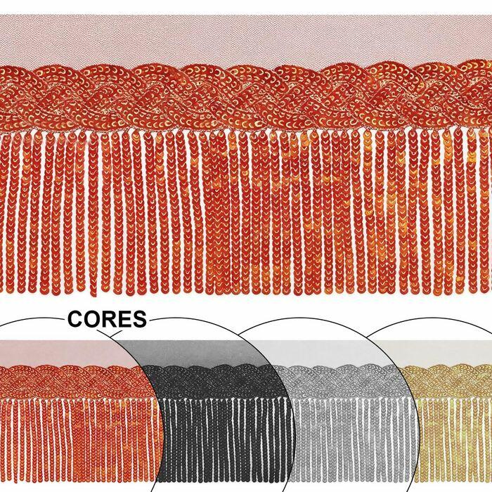 Transforme qualquer criação com a Franja de Paetê Metalizado! Com visual vibrante e acabamento trançado na borda superior, essa franja é perfeita para quem busca um toque de elegância, brilho e movimento em seus projetos.