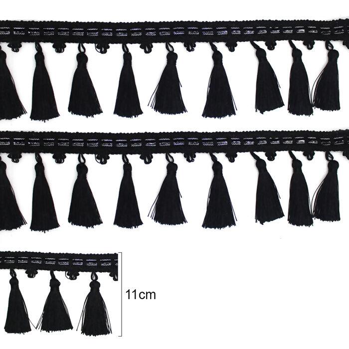 Descrição Franja Tassel - 11cm x 13m - Preto - RO.171050