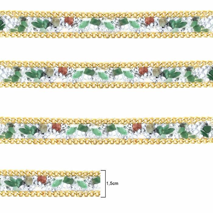 Galão com Pedrarias e Correntes - 1,5cm cm x 15y - Colorido - RO.150554