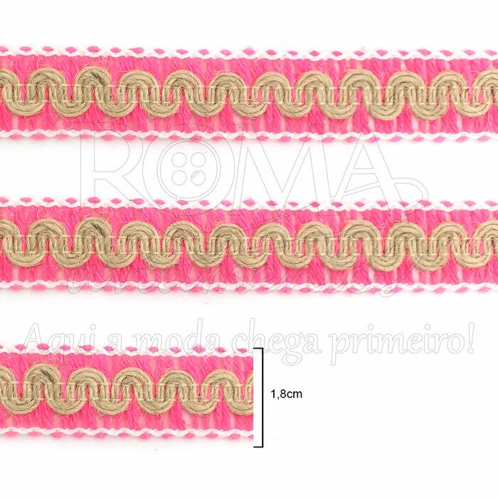Descrição Galão de Juta- 1,8cm x 10m - Rosa Neon/Cru - GL8060