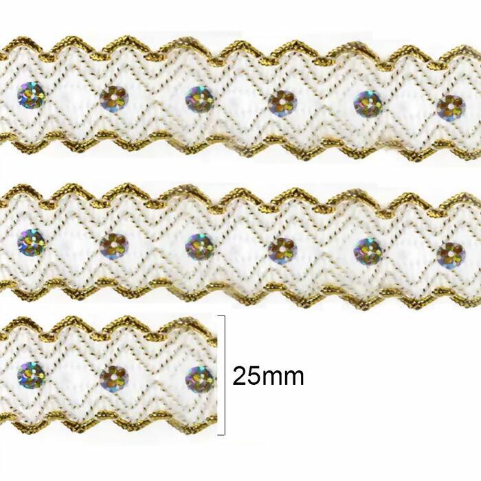 Galão metálico MOD.50 25mm c/20m branco/dourado - 35087