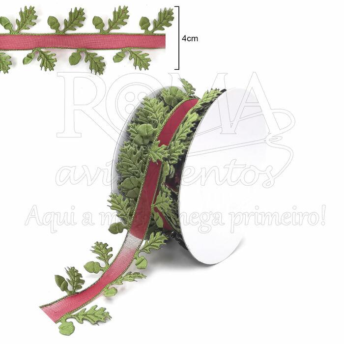 Galão Poliéster - 40mm x 10y - Verde e Vermelho - RO.150835