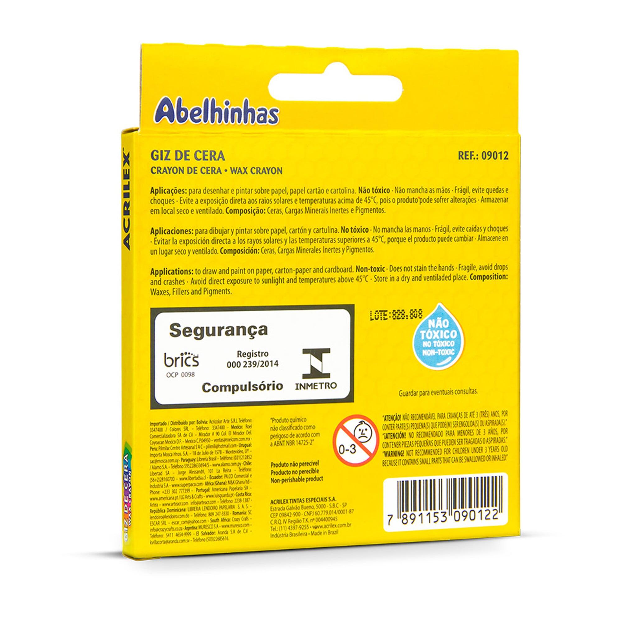 Descrição Giz de Cera Acrilex 12 Cores Infantil Escolar Não Tóxico