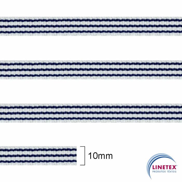 Gorgurão BD - Linetex - 10mm x 50m - Branco/Marinho - 040180