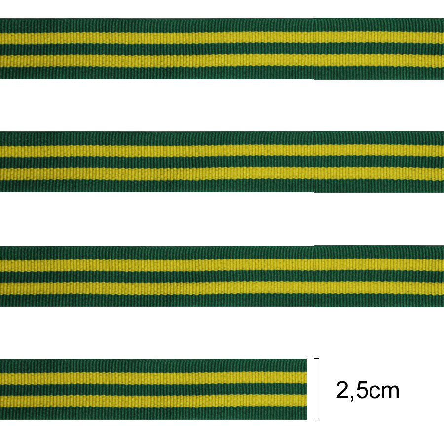 Descrição Gorgurão Listrado AD.063G - 2,5cm x 100m - Verde/Amarelo/Verde/Amarelo