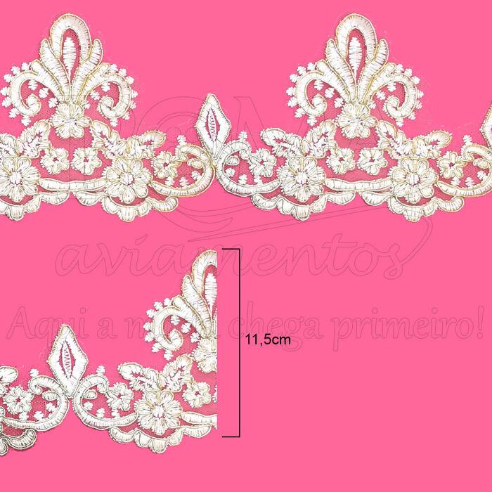 Descrição Guipir de Noiva - 11,5cm x 15y - Branco/Dourado - RO.150932