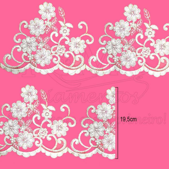 Descrição Guipir de Noiva - 19,5cm x 15y - Branco/Dourado - RO.151070