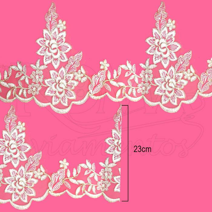 Descrição Guipir de Noiva - 23cm x 15y - Branco / Dourado - RO.151074