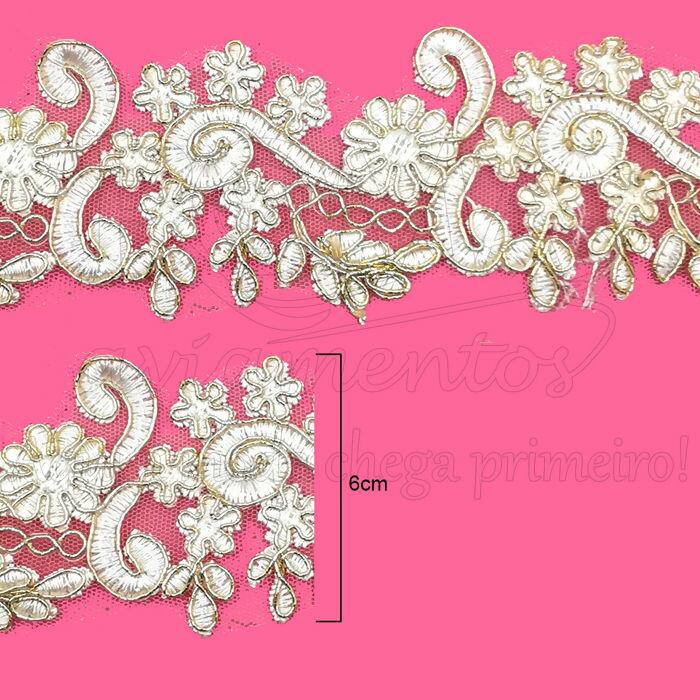 Guipir de Noiva - 6cm x 15y - Branco/Dourado - RO.150928