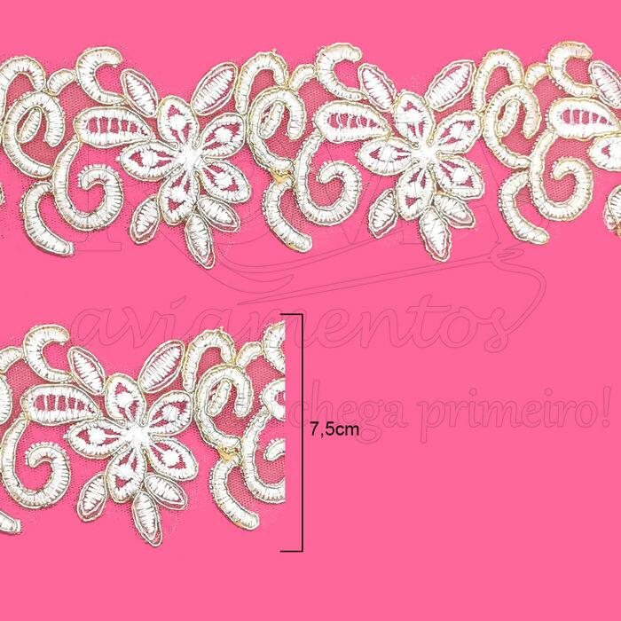 Descrição Guipir de Noiva - 7,5cm x 15y - Branco/Dourado - RO.150926