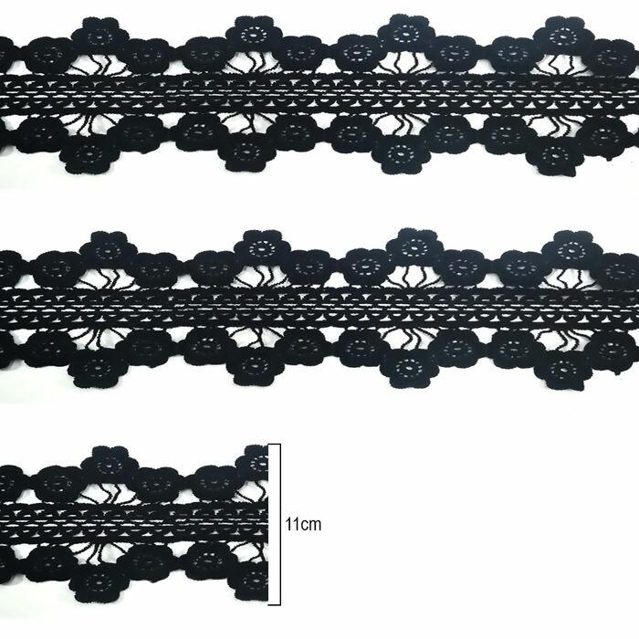 Guípir de Poliéster - 11cm x 15y - Preto - 489