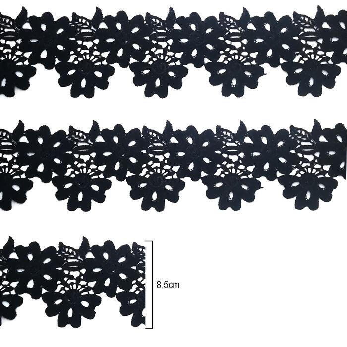 Guípir de Poliéster - 8,5cm x 15y - Preto - RO.131005