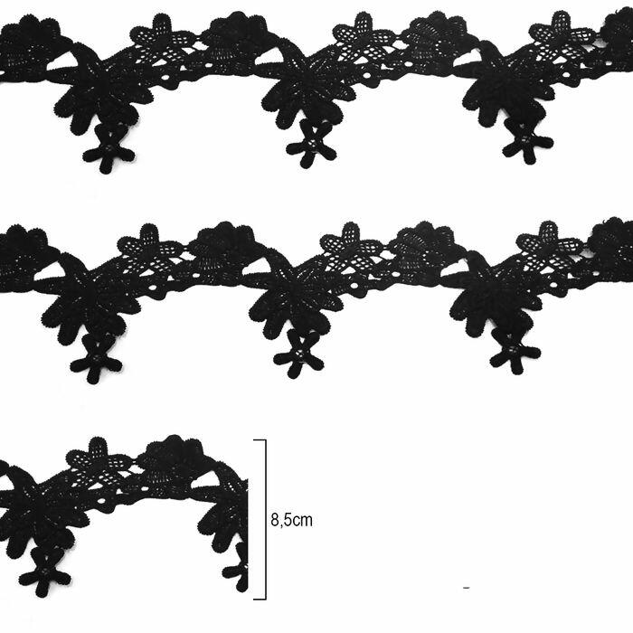Guípir de Poliéster - 8,5cm x 15y - Preto - RO.90079