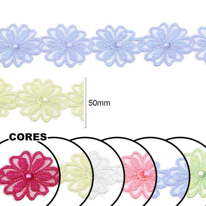 Descrição Guipir Flor Poliéster - 50mm x 13,5m - RO.152117