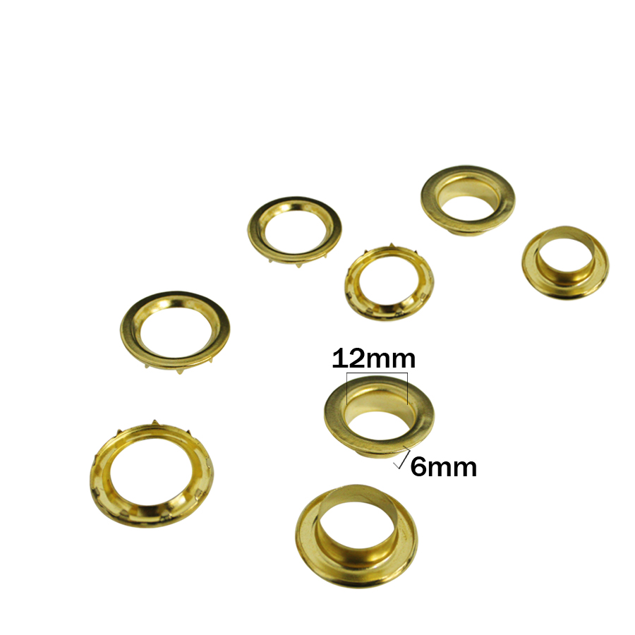 Ilhós comum de ferro, com arruela de garra. latonado TAM: 1