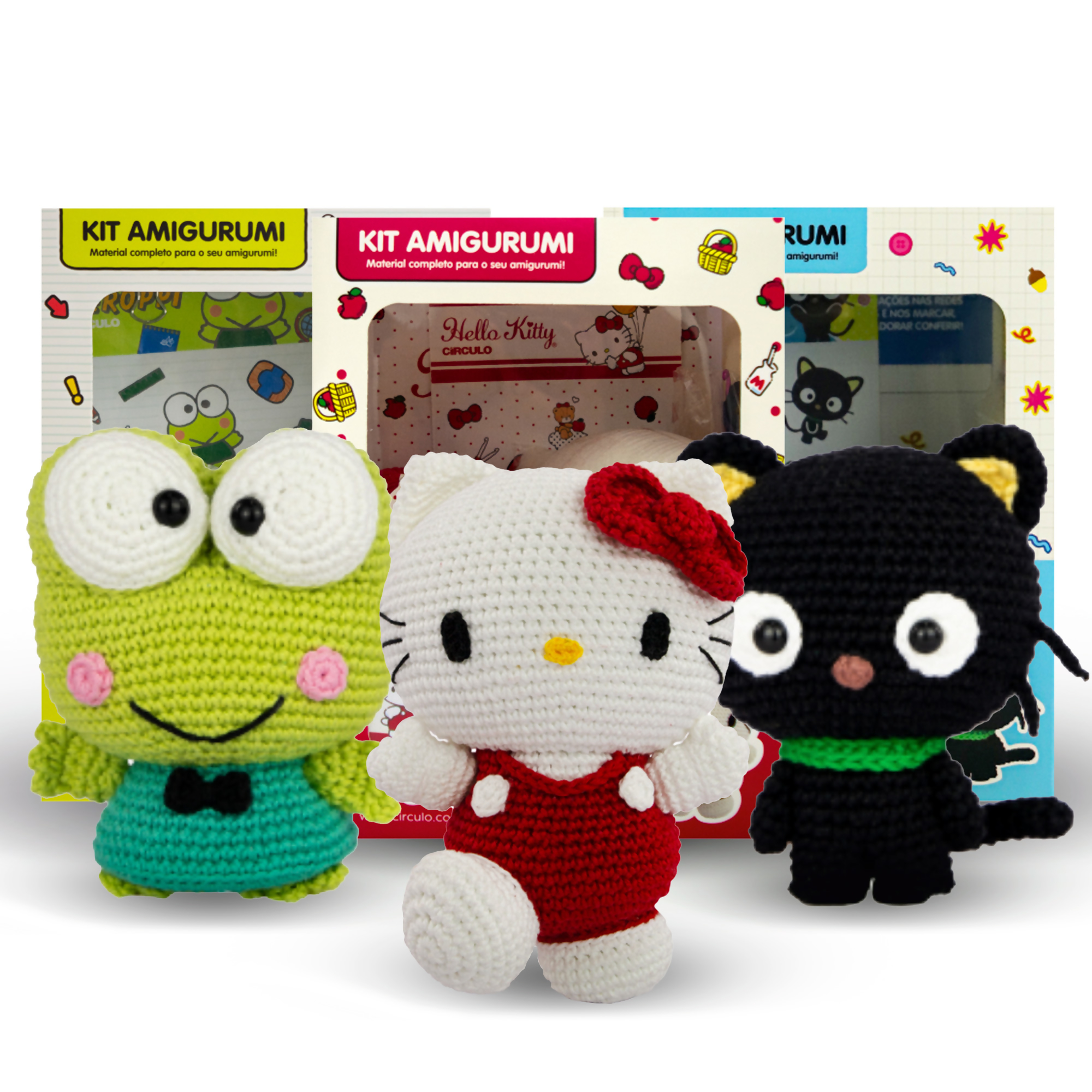 Kit Amigurumi Círculo Hello Kitty and Friends Hello Kitty, Chococat e Keroppi