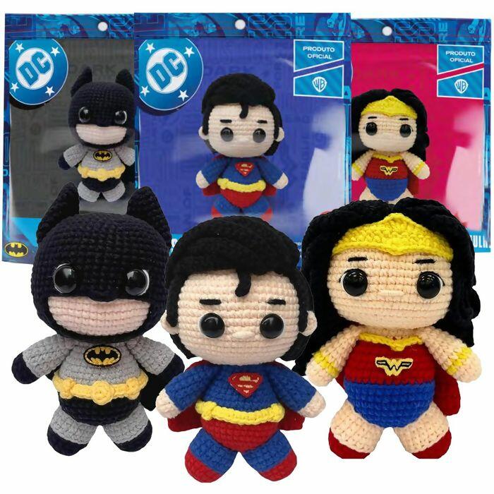 Kit Amigurumi Liga da Justiça DC – Superman, Batman, Mulher-Maravilha, Flash e Krypto