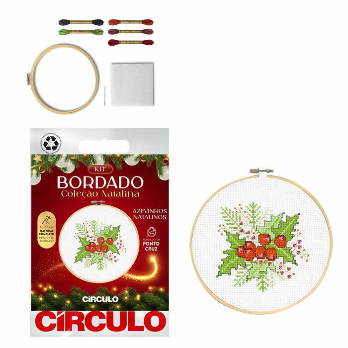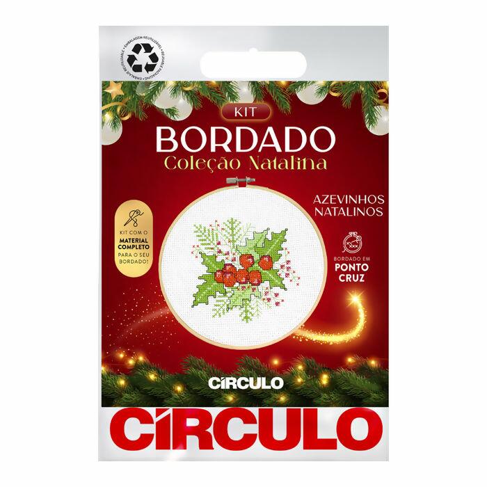 Kit Bordado - Coleção Natalina 2024 - Azevinhos Natalinos - Círculo - 460141