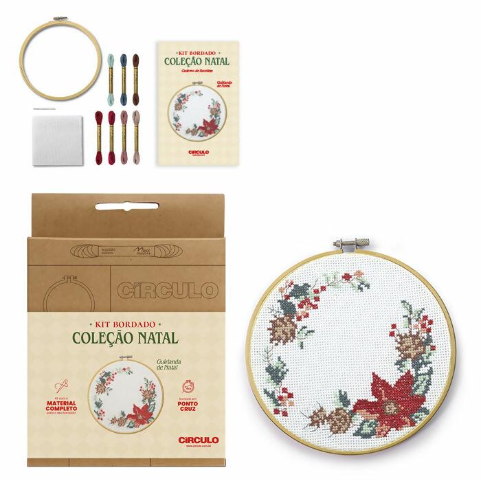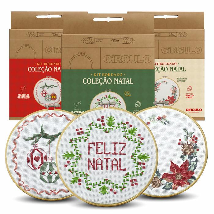 O Kit Bordado Coleção Natal da Círculo é ideal para quem ama artes manuais e deseja criar peças únicas para a decoração natalina. Disponível em três versões – Enfeite Natalino, Guirlanda de Natal e Feliz Natal – cada kit vem com material completo para você bordar em ponto cruz.