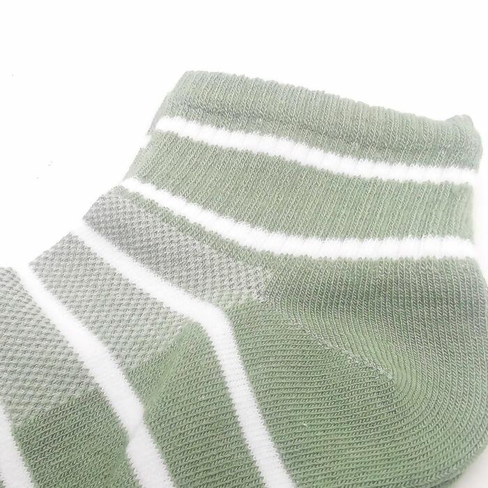 As meias possuem estampas de panda em diferentes estilos e combinações, em tons de verde, branco e listras, ideais para meninos e meninas. São confeccionadas em algodão com elastano, oferecendo maciez, respirabilidade e ótimo ajuste aos pés infantis.