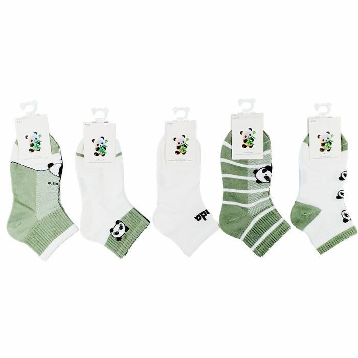 Kit com 10 Pares de Meias Infantis Unissex – Panda – Verde e Branco – 5 Modelos Sortidos