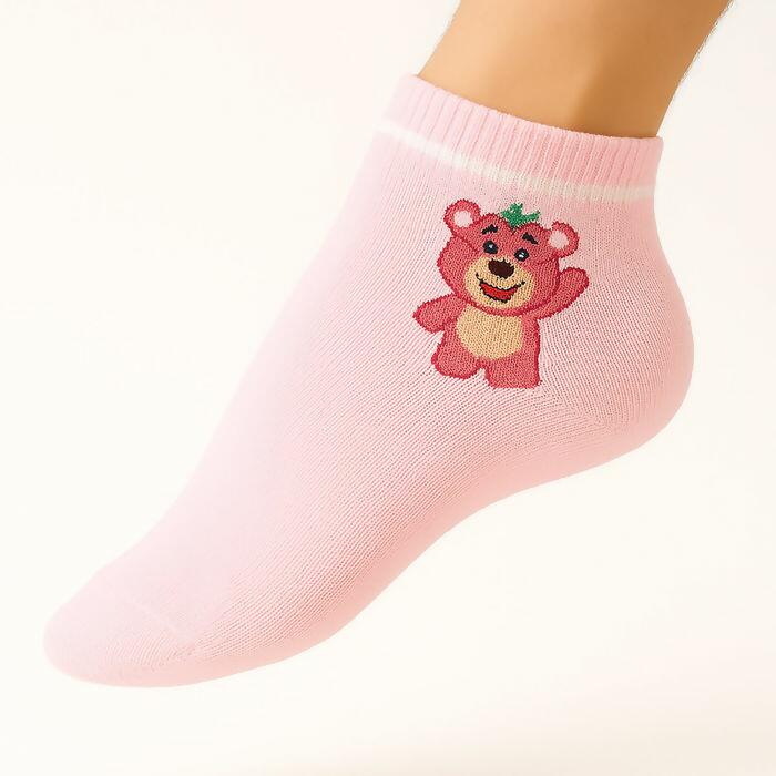 Kit com 10 Pares de Meias Infantis Femininas Strawberry Bear – Rosa e Branco – 5 Modelos Sortidos