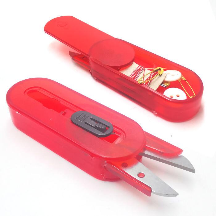 Kit compacto ideal para qualquer ocasião pois cabe no seu bolso, com um tesoura arremate e caixinha com itens de costura.