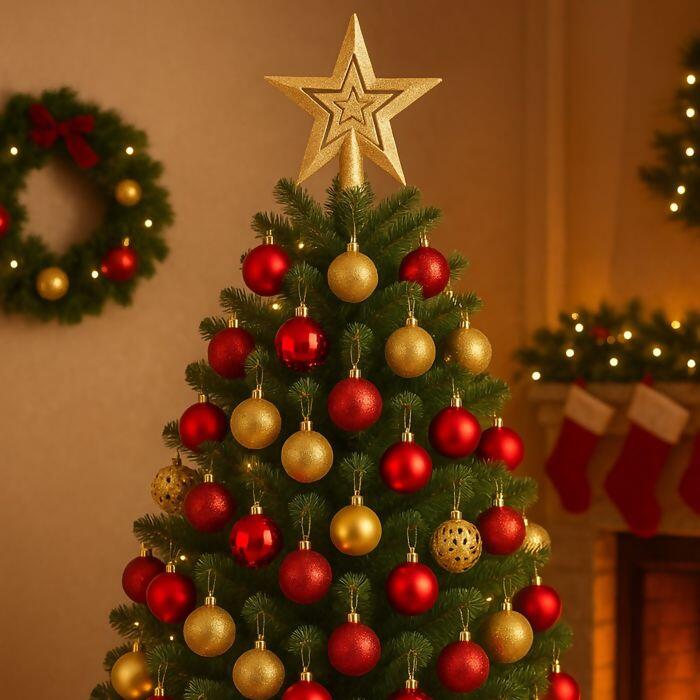 O Kit de Bolas e Enfeites Natalinos é perfeito para quem deseja montar uma decoração completa e harmoniosa. Composto por bolas de diferentes tamanhos e acabamentos (fosco, brilhante, glitter e vazado), além de uma estrela de ponteira para a árvore, esse kit traz praticidade e elegância para deixar o Natal ainda mais especial.