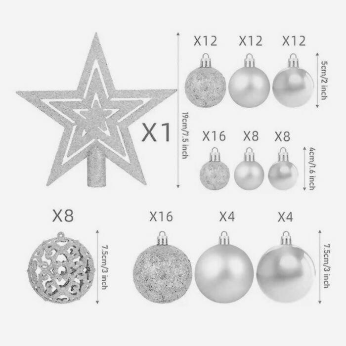 Contém bolas decorativas em diferentes tamanhos (4cm, 5cm e 7,5cm)
