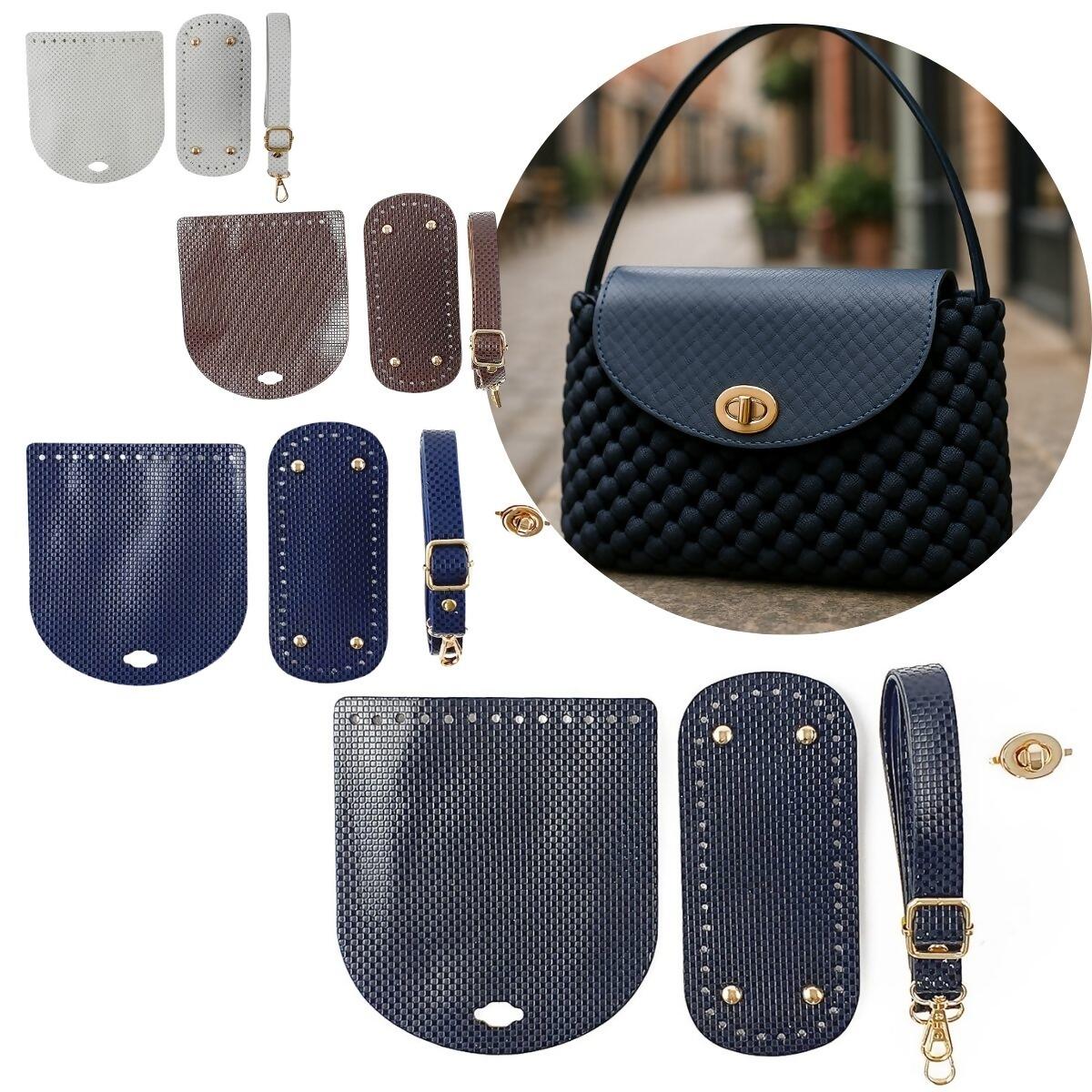 O Kit de Couro Sintético para Personalização de Bolsa é perfeito para quem ama criar bolsas exclusivas e cheias de estilo. Produzido em material sintético de alta qualidade (PU) com textura elegante, o kit vem completo com aba, base, alça com mosquetão e fecho dourado giratório. Ideal para artesãs e costureiras que desejam montar bolsas de crochê, tricô, fio de malha ou cordão de algodão.