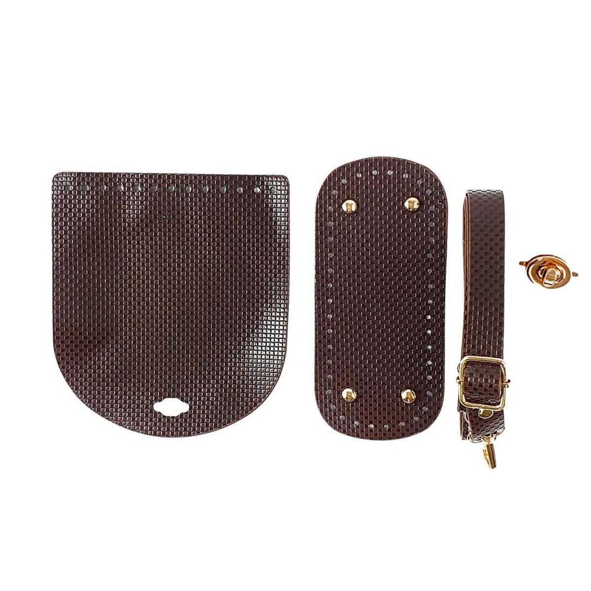Kit de Couro Sintético para Personalização de Bolsa | Base, Aba e Alça com Fecho Dourado