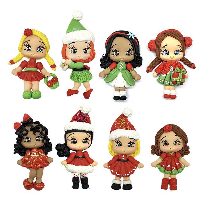 1 Pacote de Enfeite Biscuit Meninas Natal - 8 unidades.