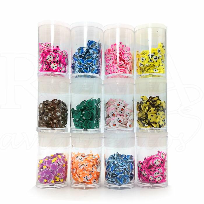 Descrição Kit Mini Apliques de Biscuit Animais Sortidas - 12 potes - RO.151244