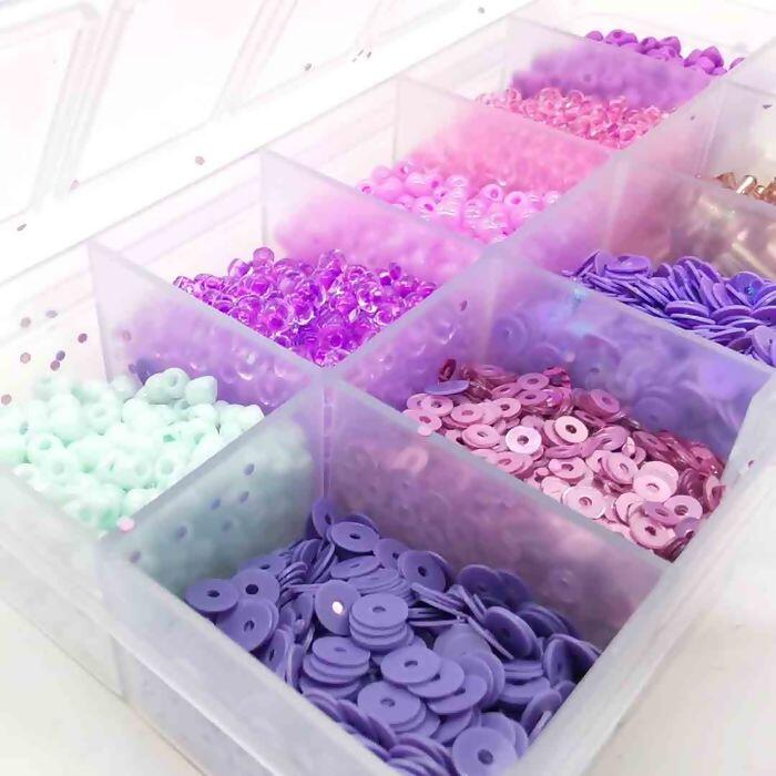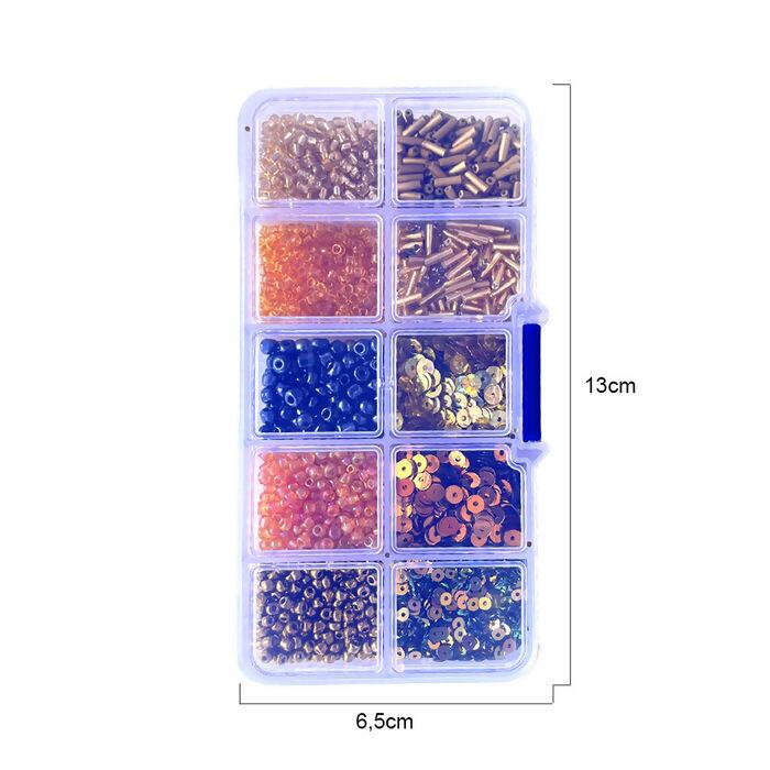 Ideal para você que busca uma decoração mais delicada em seus artesanatos. Com os enfeites é possivel decorar laços, fazer colagens em tiaras, pesilhas e até mesmo decoração de unhas para Nail designer. O kit possui diversos tipos de canutilhos, miçangas e lantejoulas.