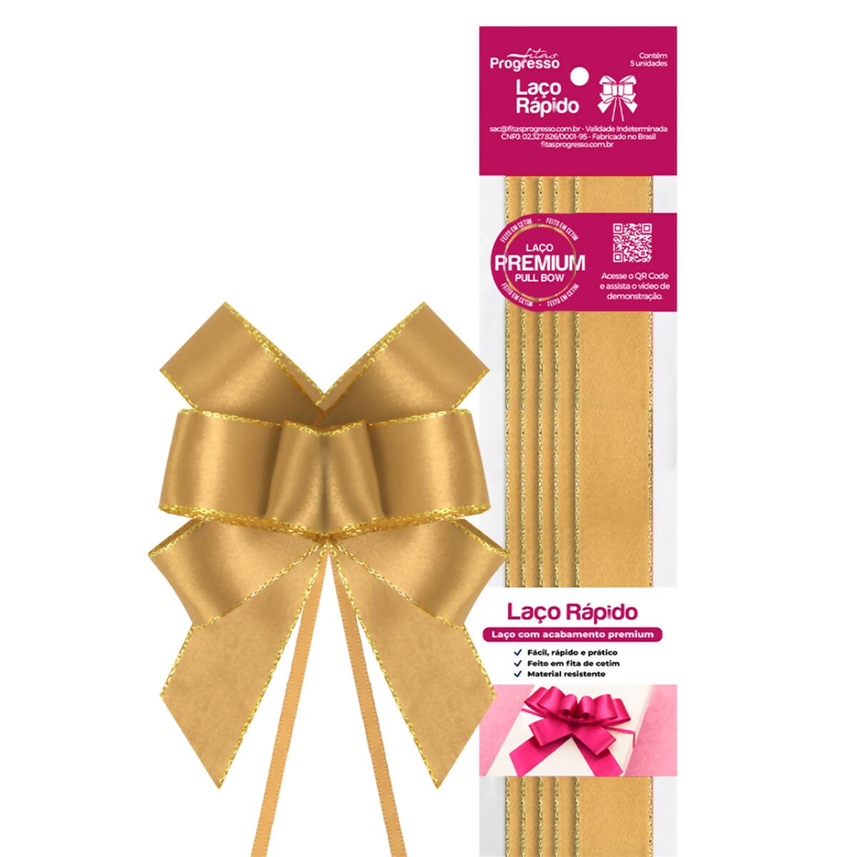 Descrição Laço Rápido com Borda Dourado Fácil Decorativo 5 unidades 22mm LRD005