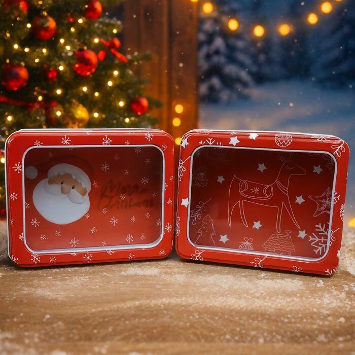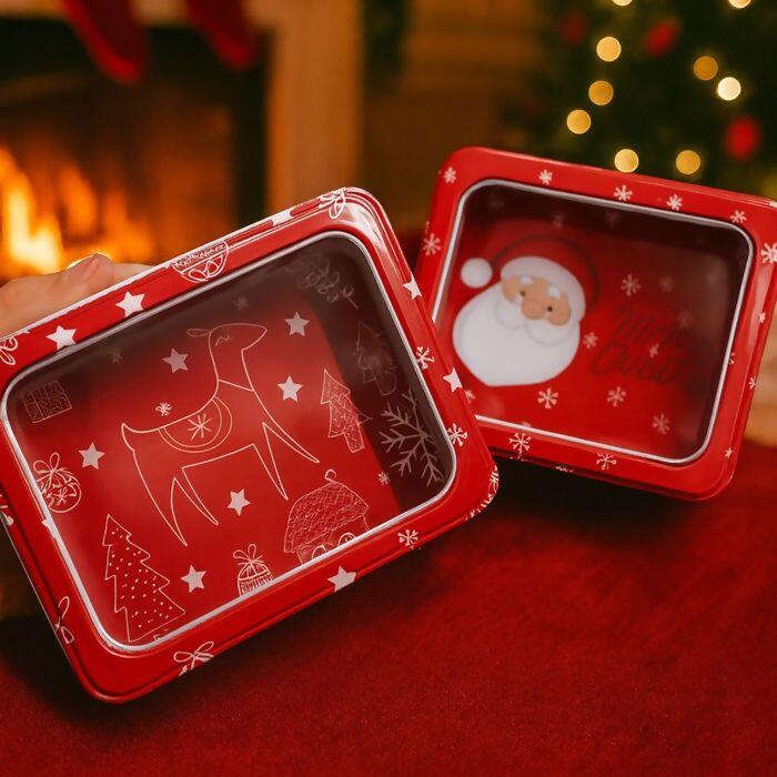 A Lata Natalina Decorativa é perfeita para armazenar biscoitos, doces, bolachas ou lembrancinhas de Natal, unindo praticidade e beleza em um só produto. Com estampa festiva em vermelho, detalhes de Papai Noel e rena, além de tampa transparente que valoriza o conteúdo interno, ela se torna também um lindo enfeite para sua decoração natalina.