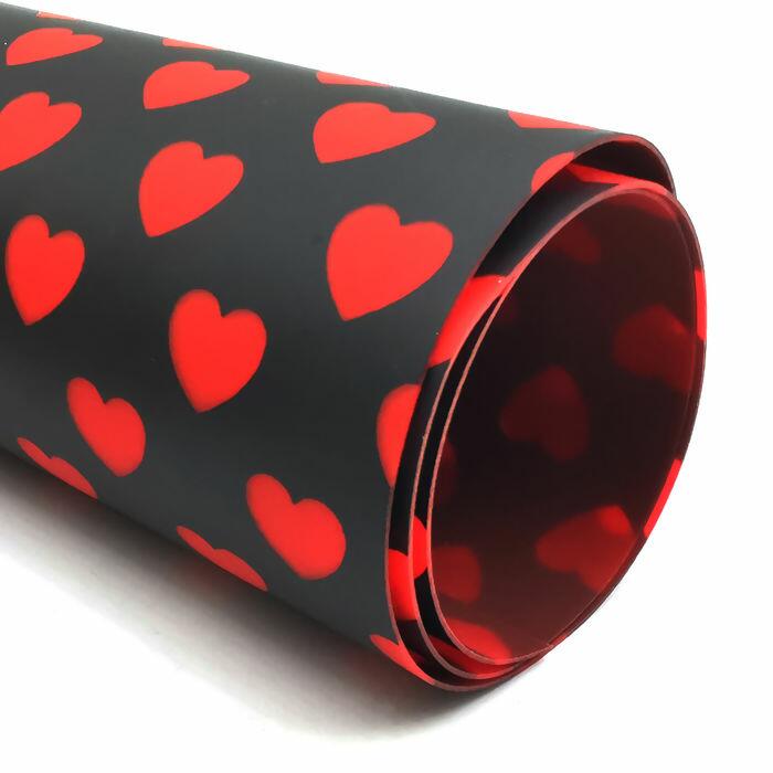 Descrição Lonita lisa - 24 x 40cm - Corações - Preto e Vermelho - RO.150270 - 047346
