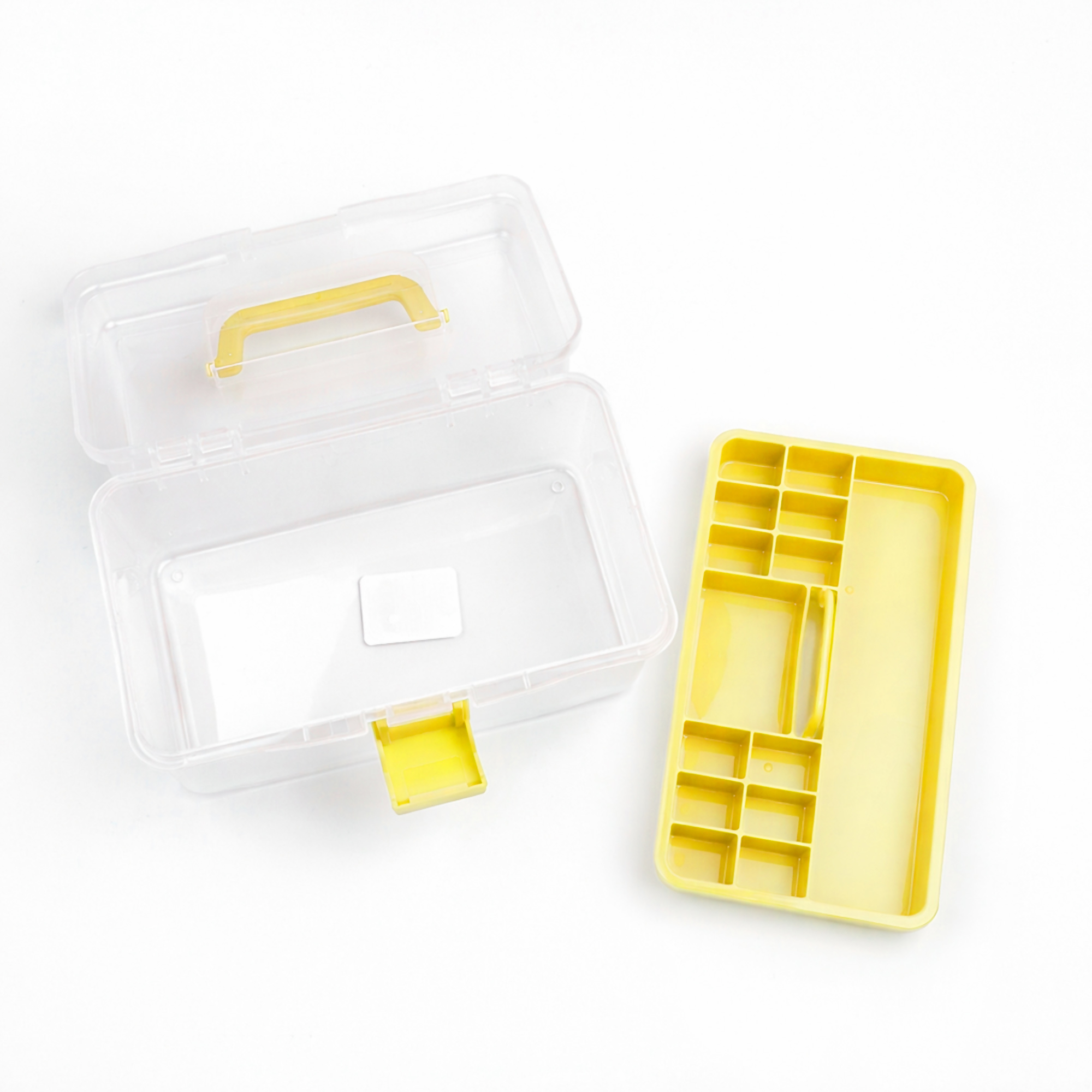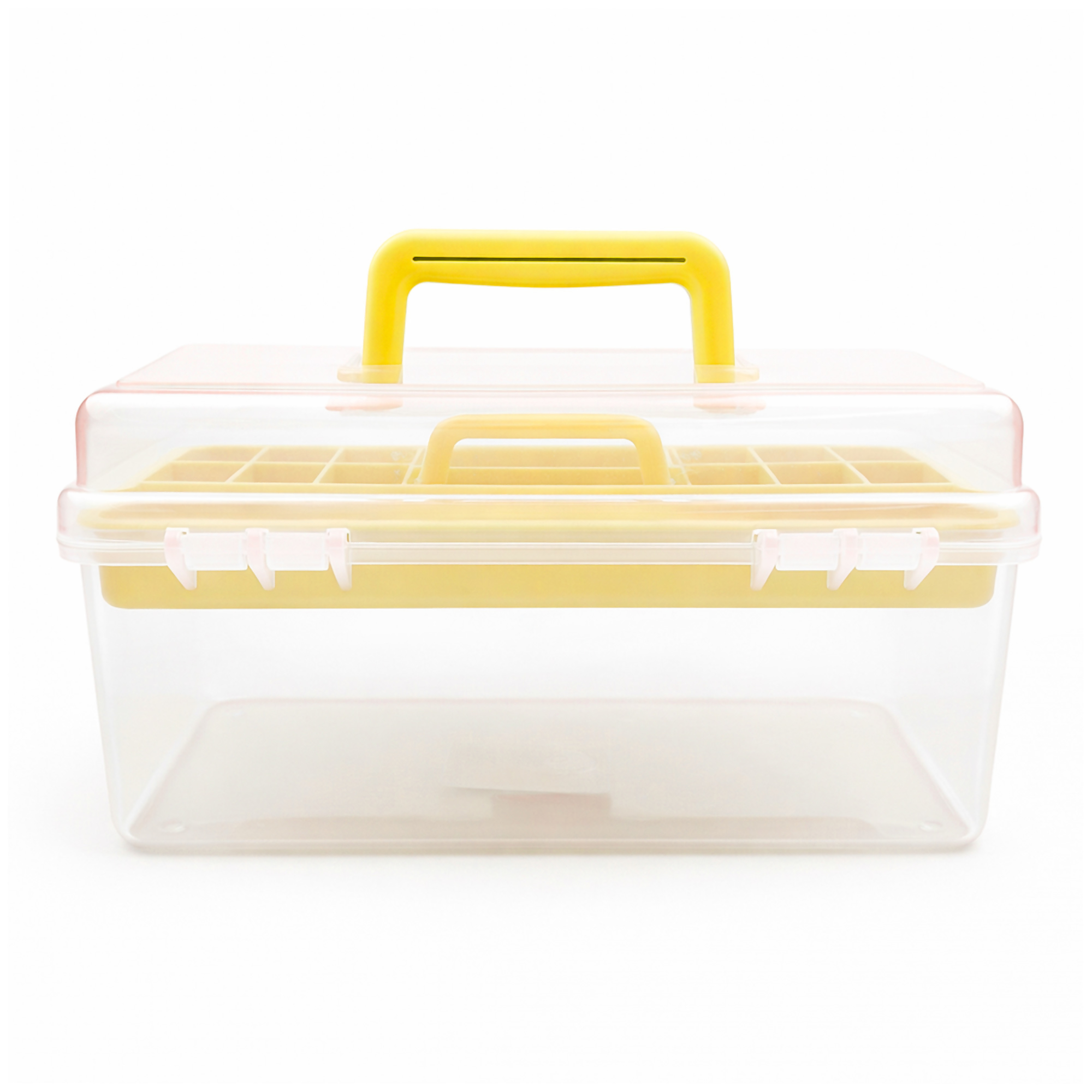 Maleta organizadora produzida em 100% plástico resistente, ideal para manter pequenos itens sempre bem separados. Possui bandeja interna com divisórias, tampa transparente para visualização rápida, fecho seguro e alça reforçada, facilitando o transporte no dia a dia. Compacta, ocupa pouco espaço e entrega muita organização.