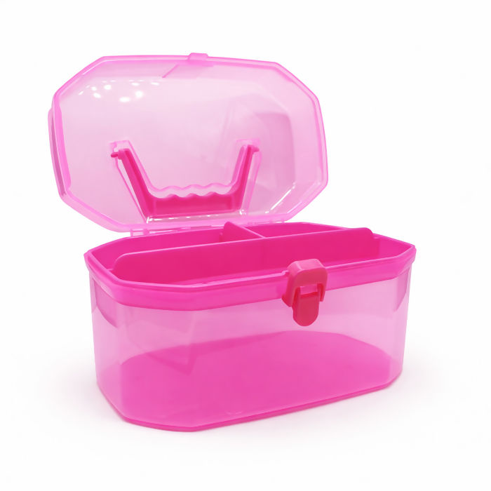 A maleta organizadora rosa é a solução prática para quem busca organização com um toque moderno. Fabricada em plástico resistente e translúcido, permite visualizar o conteúdo com facilidade, otimizando o dia a dia em casa, no trabalho ou no ateliê.
