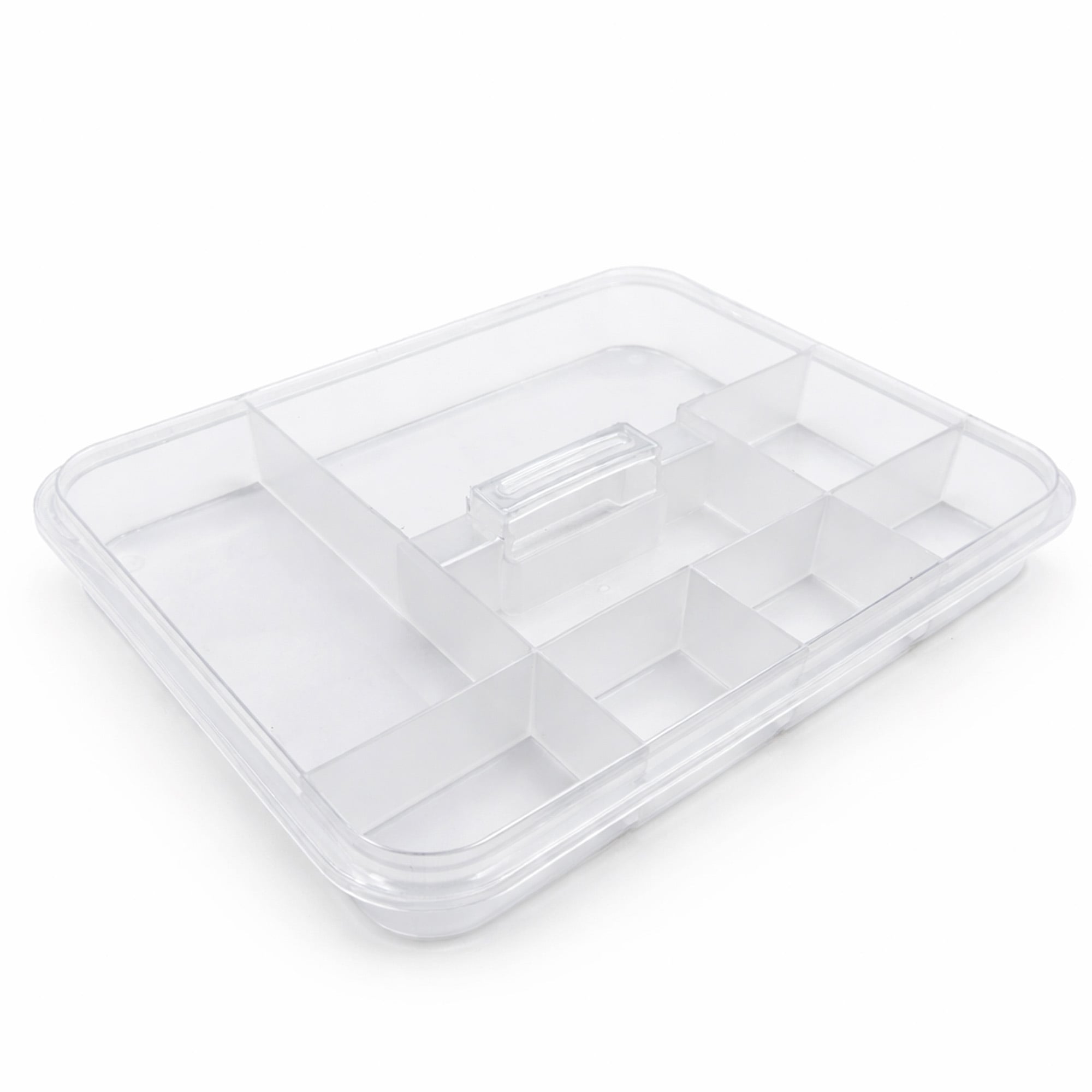 Separe os itens por tipo nas divisórias. A tampa transparente facilita visualizar tudo rapidamente, evitando perda de tempo no dia a dia.