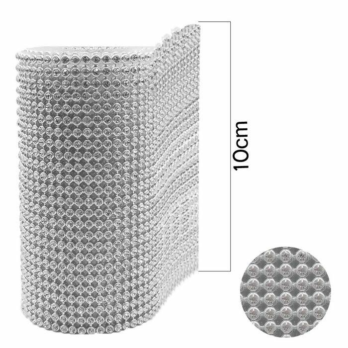 Manta de strass termocolante 10cm x 45cm prata - 34348
