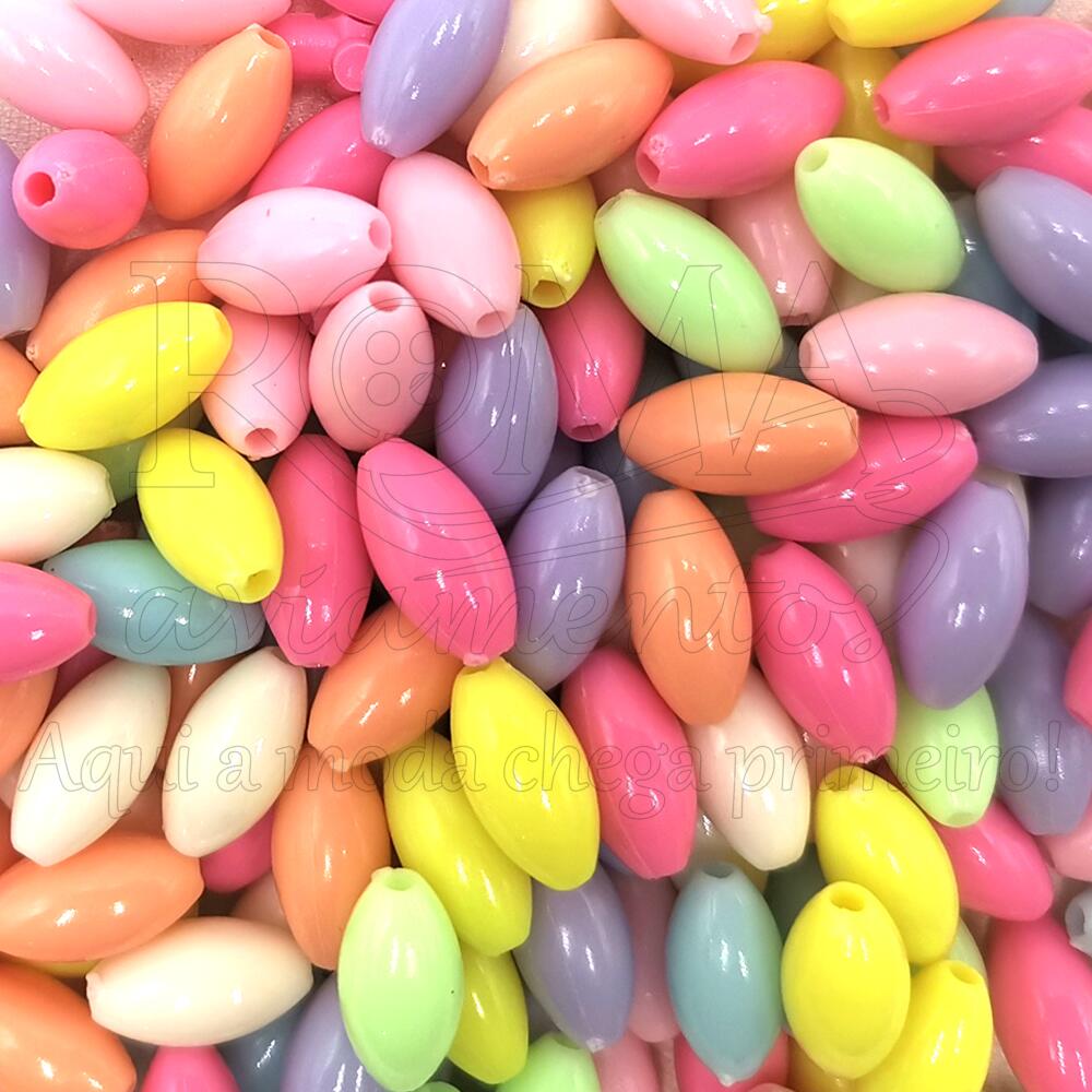Descrição Miçanga Arroz - pacote 100g - 1,5cm x 6mm - Multicor Claro - RO.150880