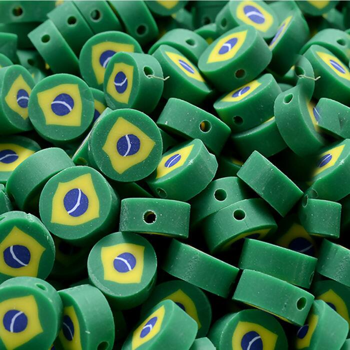 Aqui na Roma Aviamentos você encontra Miçanga de Biscuit com o tema Brasil, perfeito para confecção de colares, pulseiras, tornozeleiras, gargantilhas, chokers, anéis, chinelos, bolsas e tudo que sua imaginação permitir.