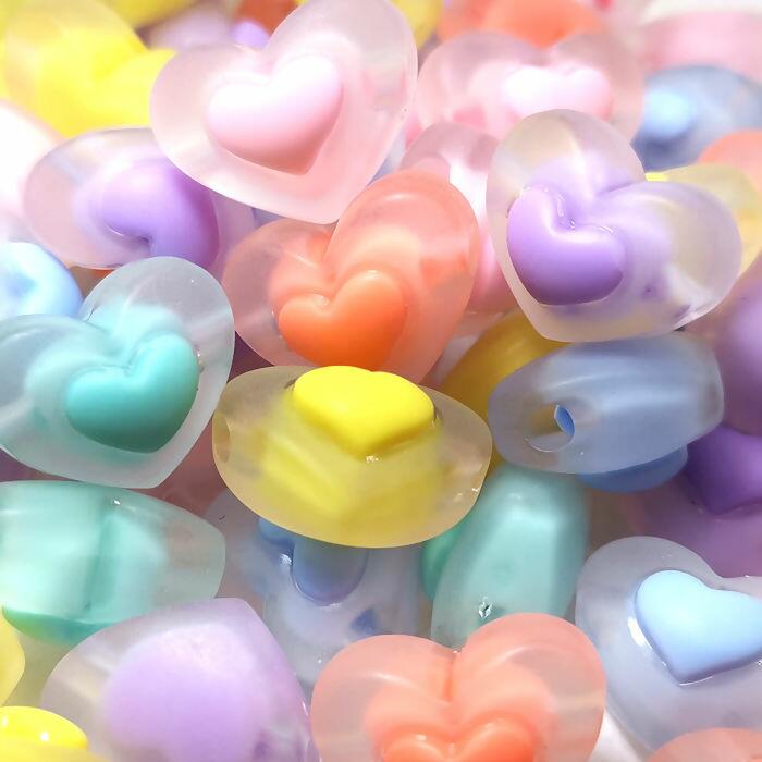 Descrição Miçanga Coração Fosco com Furo - 100g - 18mm - Sortido - MNC822