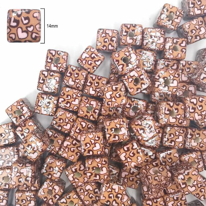 Miçanga Cubo - Coração - c/20 unidades - 14mm - RO.150636