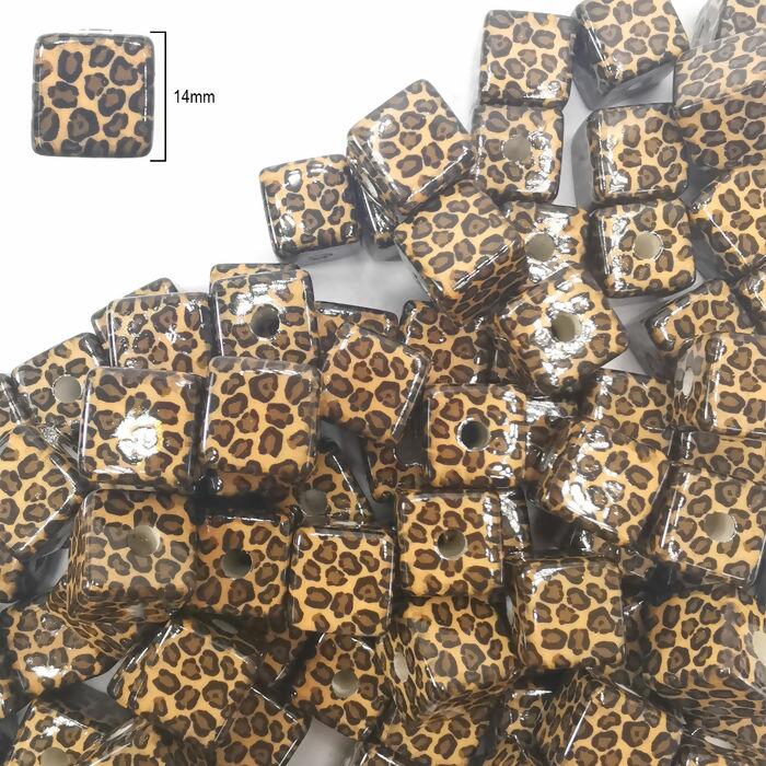 Miçanga Cubo - Onça - c/100 unidades - 14mm - RO.150635