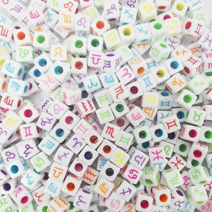 Descrição Miçanga Cubo - Signos - pacote com 500g - Sortido - 7mm - RO.150775