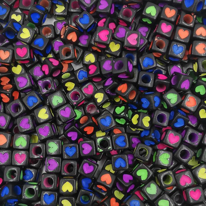 Miçanga Cubo com Corações c/500 gr - 7mm x 7mm - RO.150947